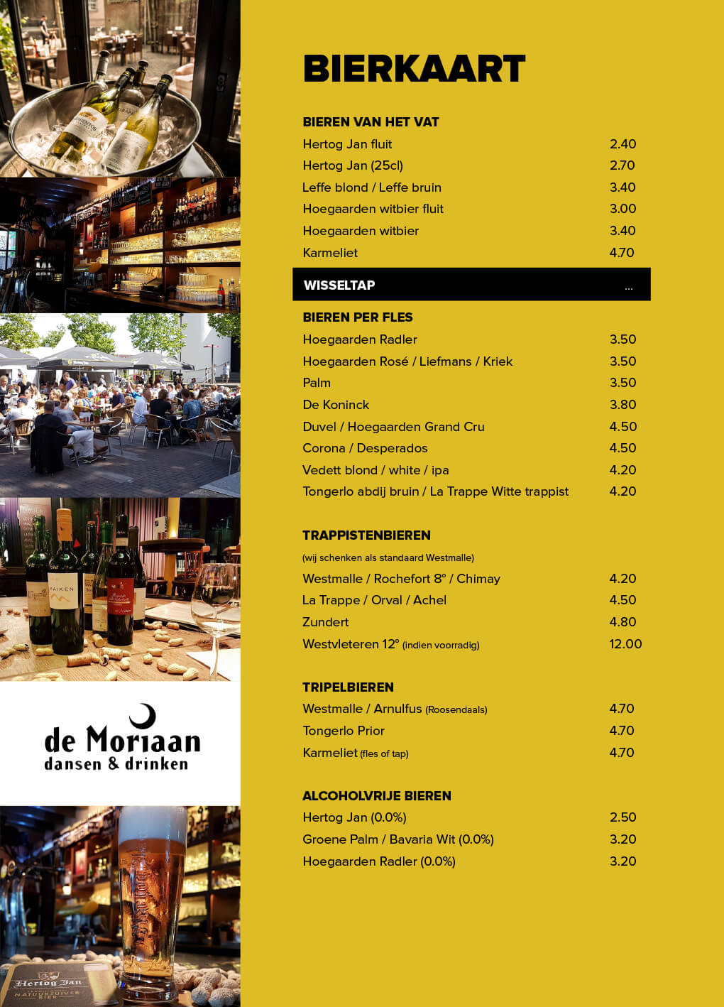 Ons herkenbare, karakteristieke pand op het Tongerloplein in Roosendaal heeft een rijke geschiedenis. Het is namelijk lang niet altijd een café en restaurant geweest. Zo huist het cafégedeelte in een vroegere vismarkt. De gele pilaren en massieve bar (wat vroeger de snijtafel was) herinneren nog aan de voormalige visafslag. In samenwerking met de brouwerij van Hertog Jan en het design-bureau Beers&Brickworks hebben we in 2014 een nieuw karakter proberen te geven aan ons café. Met een nieuwe achterwand (zelf ontworpen en uitgewerkt) hebben we een rustieke sfeer gecreëerd waarmee we terug gaan naar de roots van het cafe. Ooit gebouwd als bruine kroeg/ontmoetingsplaats en tussentijds jarenlang een feestcafé geweest. Nu zijn we weer waar we willen zijn: gezellig, bruin, rustiek en ongedwongen. Pinda’s te over… EN speciaalbieren genoeg…